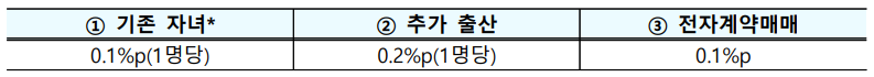 🚩 추가 출산 시, 아이 1명당 금리 0.2% 인하 및 특례기간 4년 연장 가능(단, 금리 하한선은 1.0%, 특례기간 상한은 총 12년)