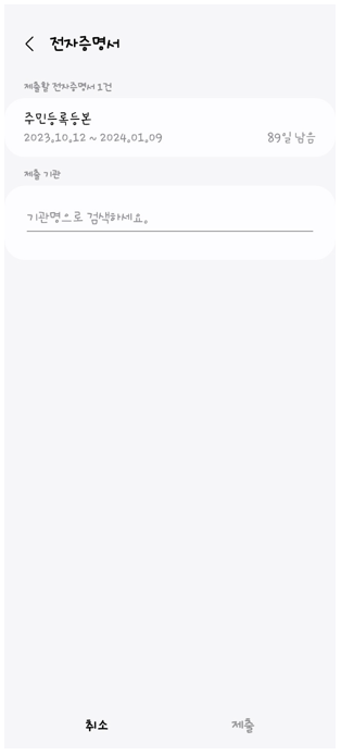 전자증명서를 발급 받았다면 내가 발급받은 문서를 조회, 열람, 또는 공유하거나 기관에 제출하는 방법에 대해 알려드리겠습니다.